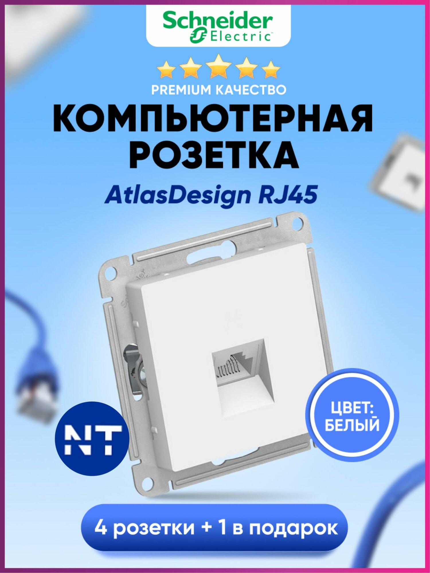 Купить Розетка компьютерная 1xRJ45 Cat.5 ATLASDESIGN, белый | код. ATN000183 | Schneider Electric (5шт.в упак.)