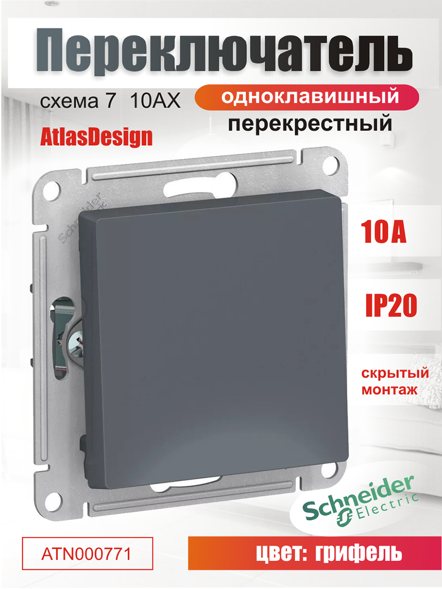 Переключатель перекрестный SCHNEIDER ELECTRIC ATLASDESIGN, сх.7, 10АХ, механизм, грифель ATN000771