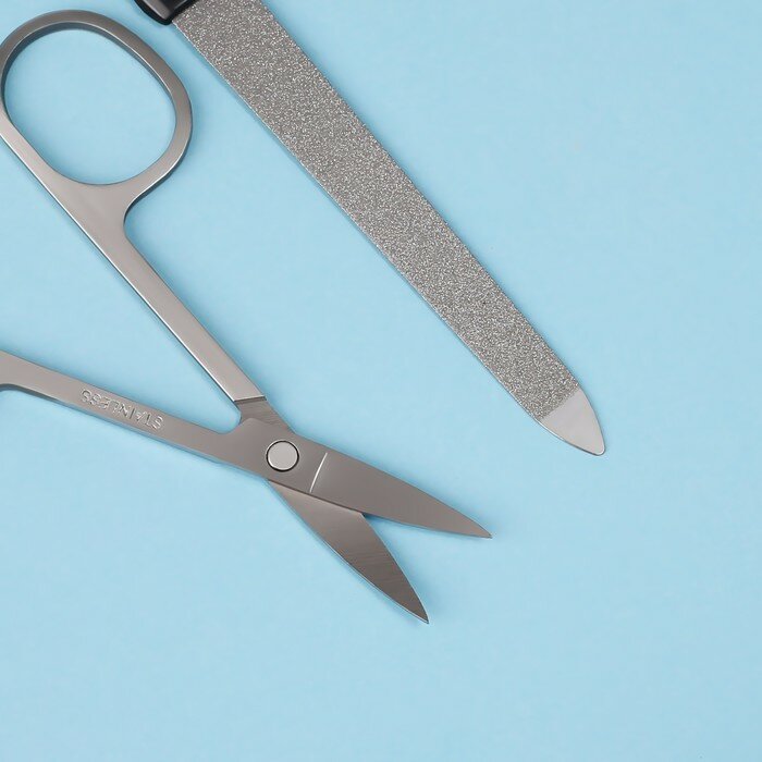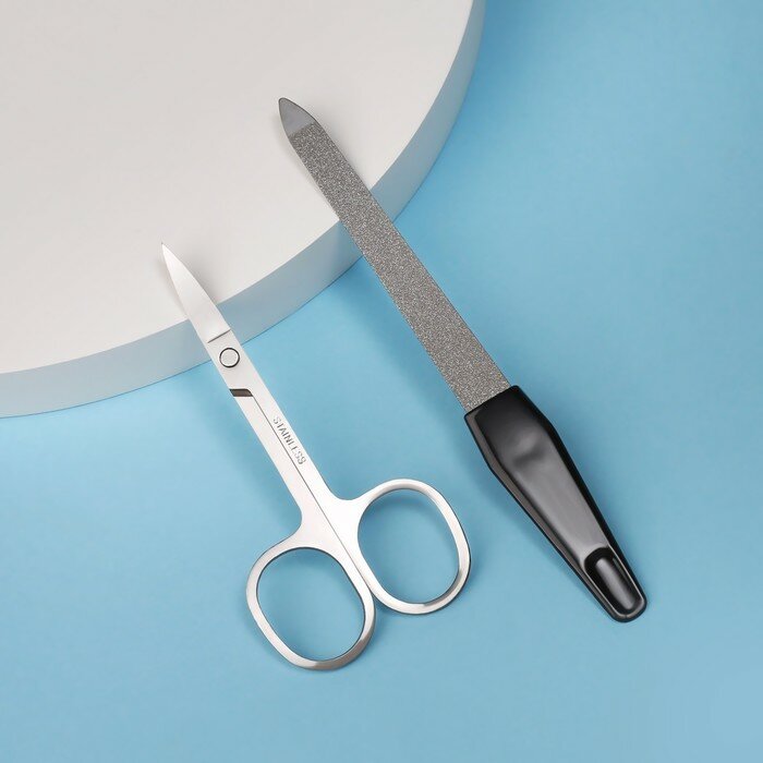 Купить Набор маникюр 2пр (ножницы пилка металл) чёрн/серебр пакет QF 4103281