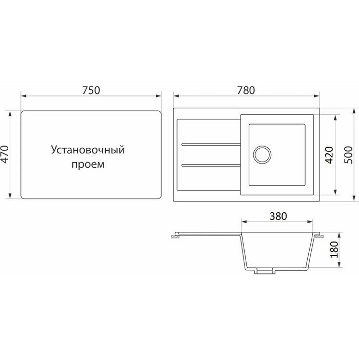| Дополнительная информация | диаметр сливного отверстия: 9 см; вырез в столешнице для установки мойки - 755х465 мм |