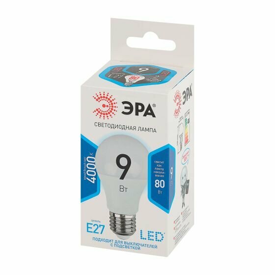 Купить Лампа светодиодная ЭРА STD LED Б0032247, Е27, 9 Вт, груша, нейтральный белый свет