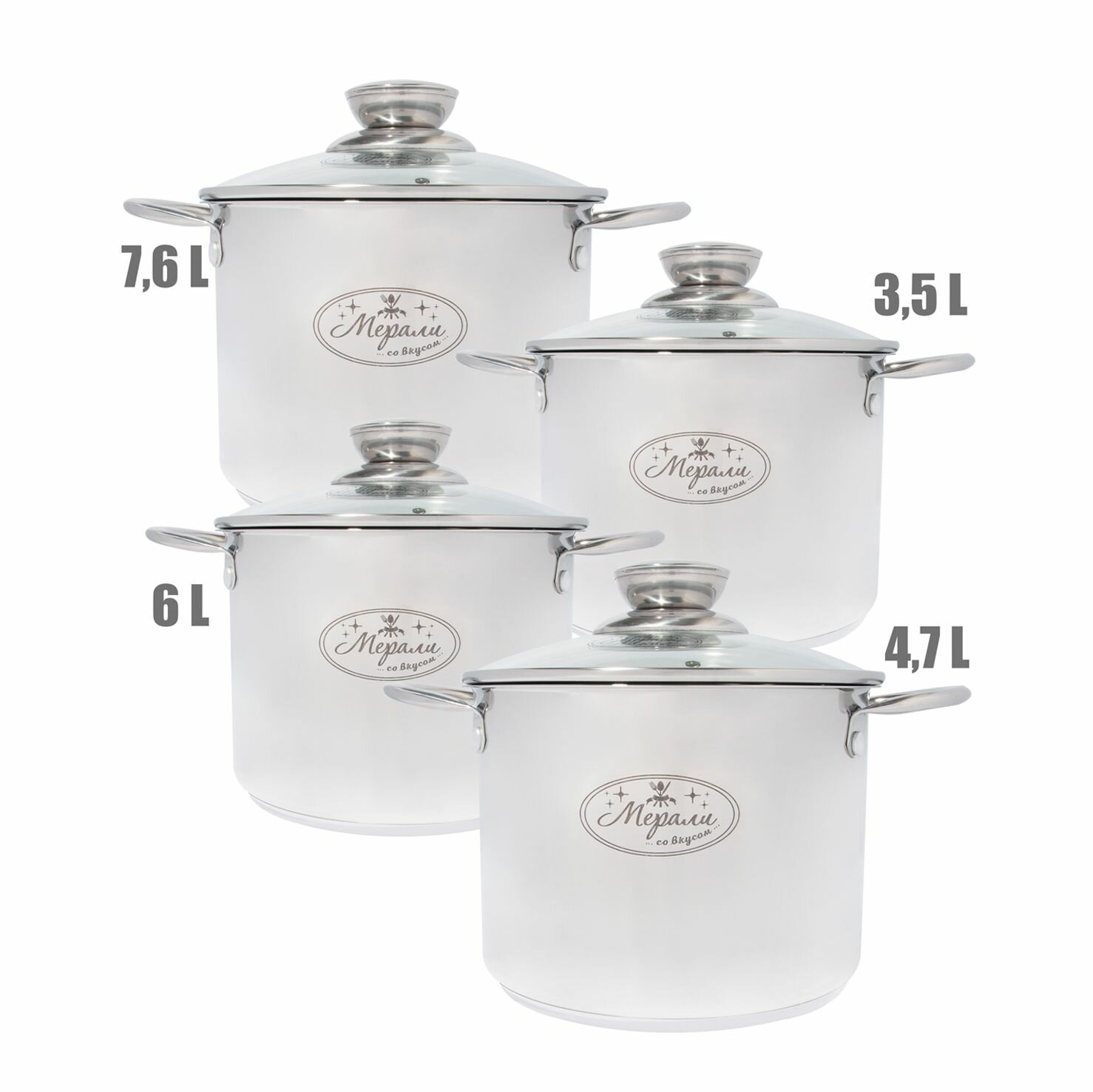 Кастрюля из нержавеющей стали с крышкой Мерали для газовых электрических и индукционных плит 4,7 л