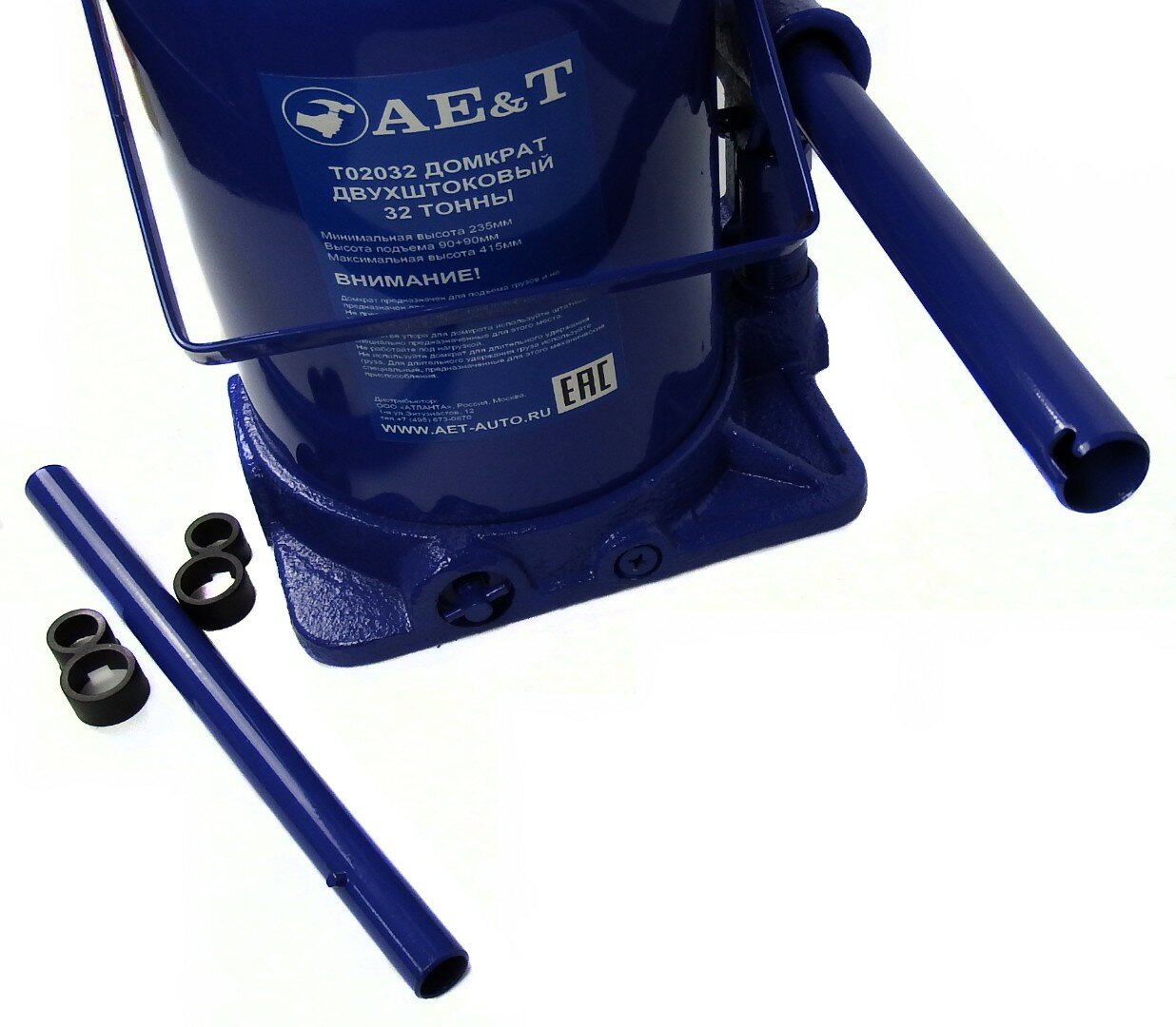 AE&T Домкрат бутылочный двухштоковый 32т T02032