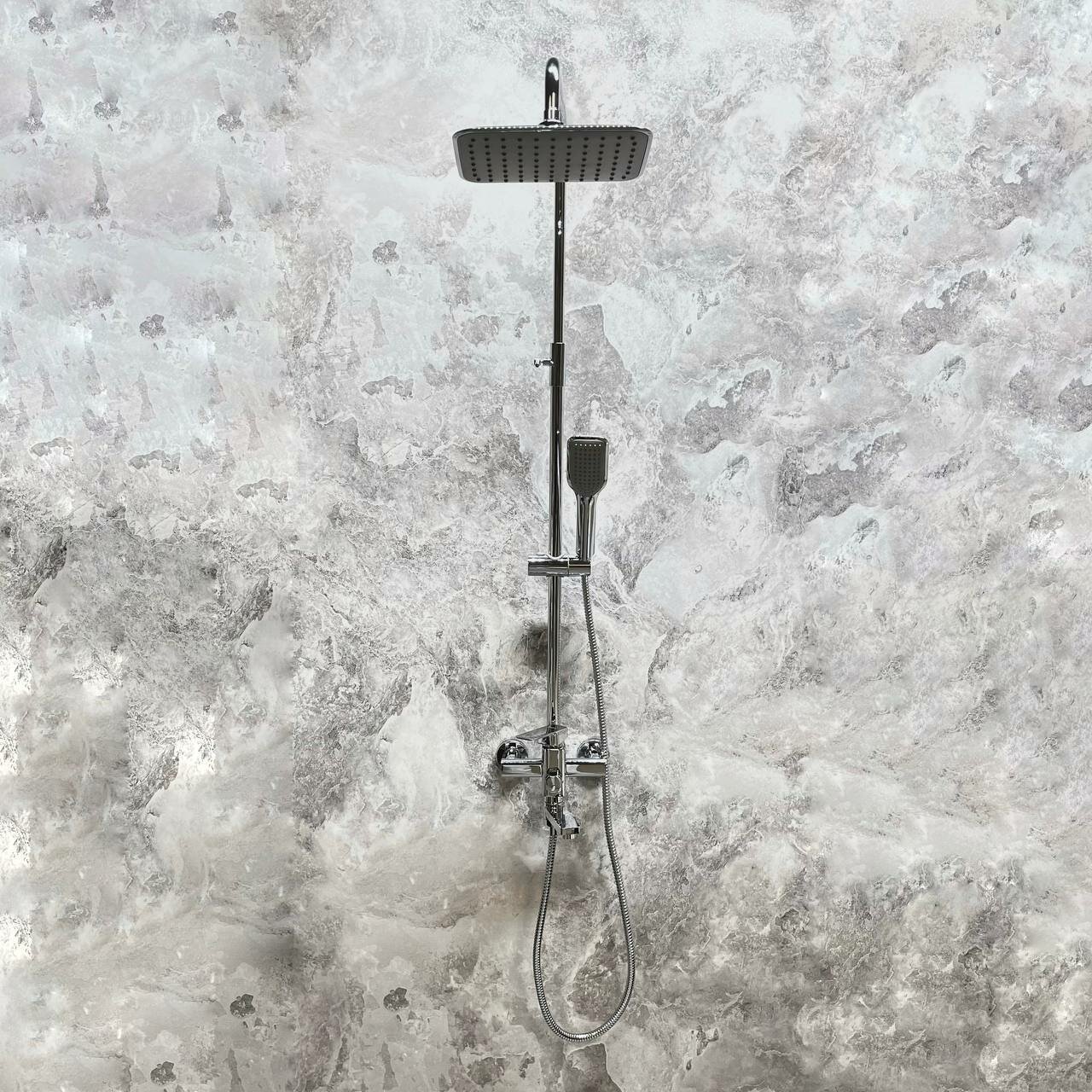 Кран, стандартный душ и высокий душ Выглядит очень стильно |