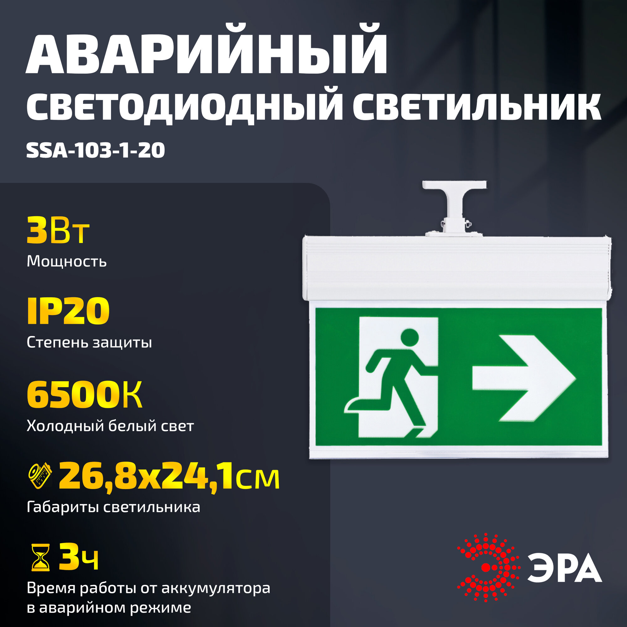 Купить Аварийный светильник ЭРА SSA-103-1-20 3ч 3Вт ЧЕЛ-стрелка арт. Б0044392 (1 шт.)