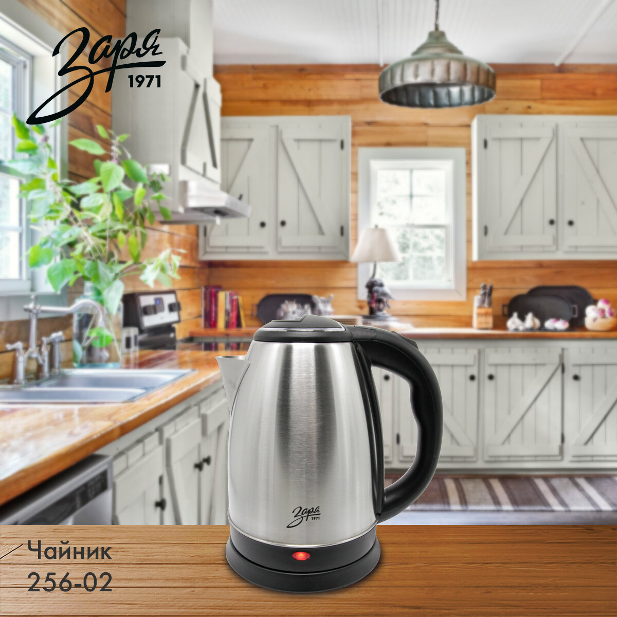 Купить Электрический чайник Заря 256-02 1,8 л, автоотключение, из нержавеющей стали, поворот на 360, дисковый ТЭН, металлический, электрочайник, 1500 Вт