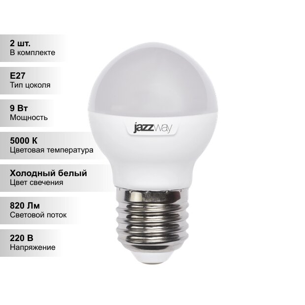 Купить (2 шт.) Светодиодная лампочка Jazzway G45 9Вт 230В 5000K E27