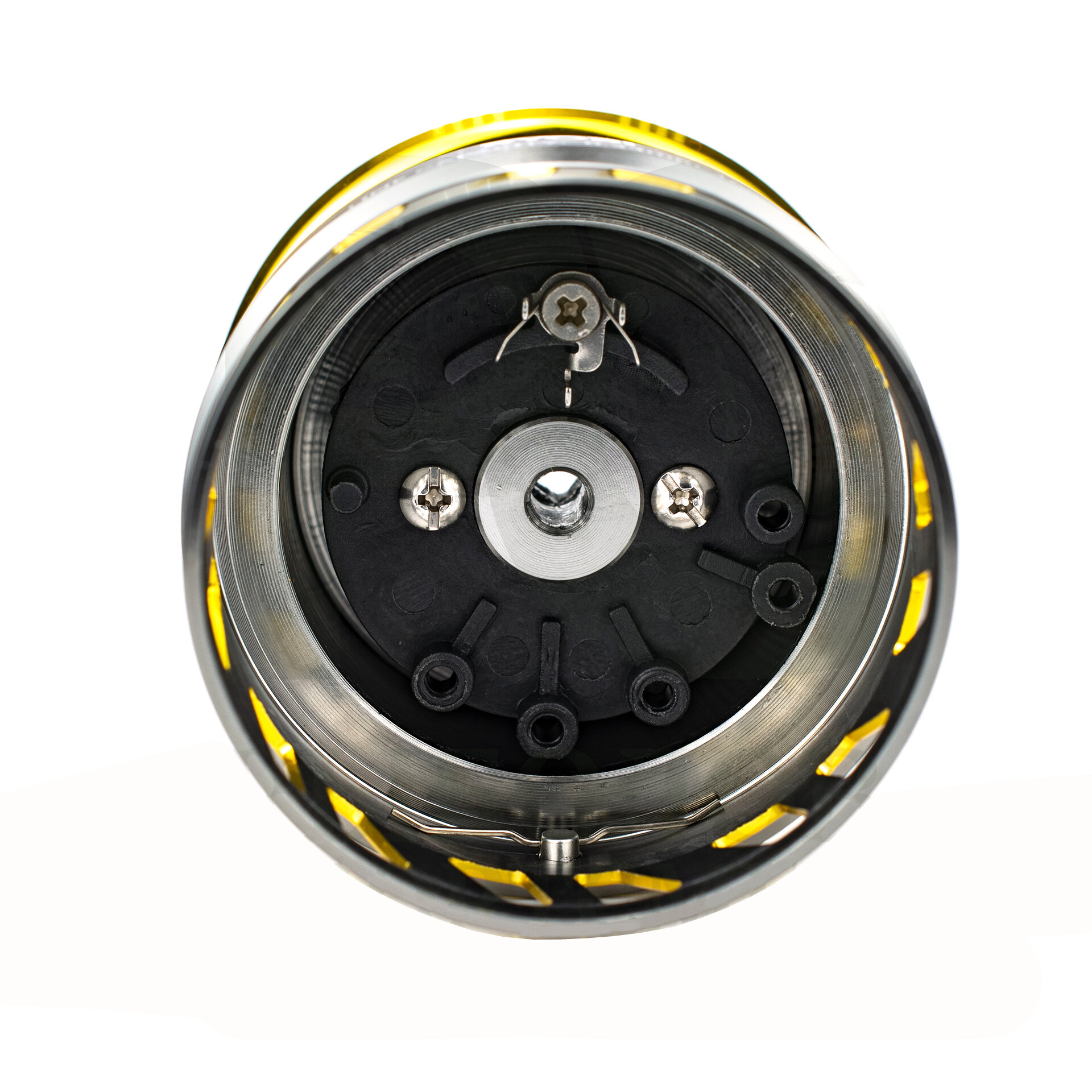 | Особенности | Алюминиевая шпуля / Внешняя регулировка тормоза / С двух сторон / Стопор обратного хода |