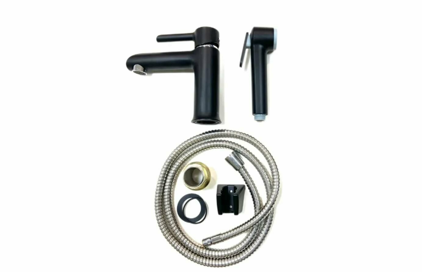 Смеситель для раковины с гигиенической лейкой (латунь/пластик) HAIBA HB12805-7 цвет-чёрный/хром.