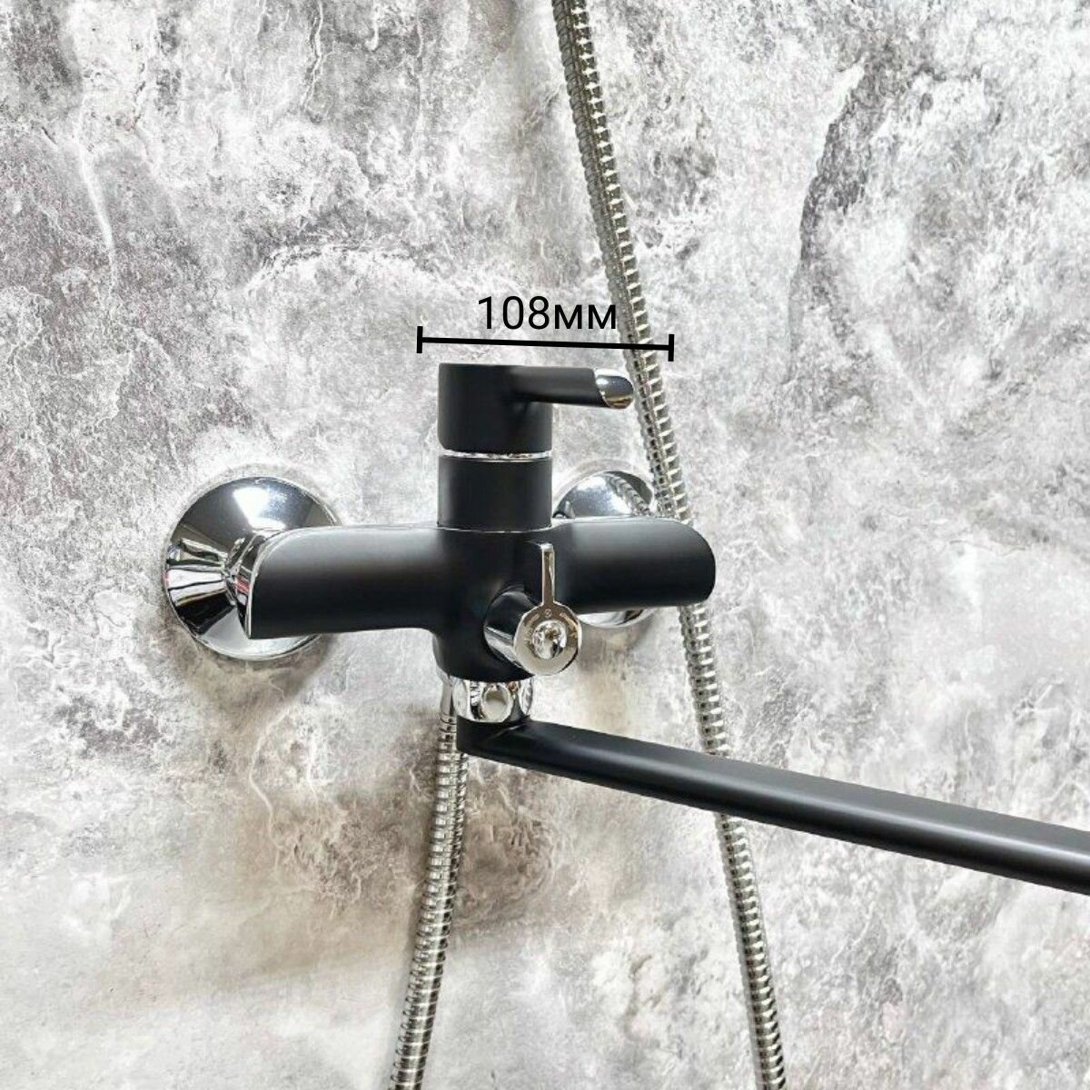 Смеситель для ванны с длинным поворотным изливом и душевой лейкой (латунь) HAIBA HB22548-7 цвет-чёрный/глянцевый хром.