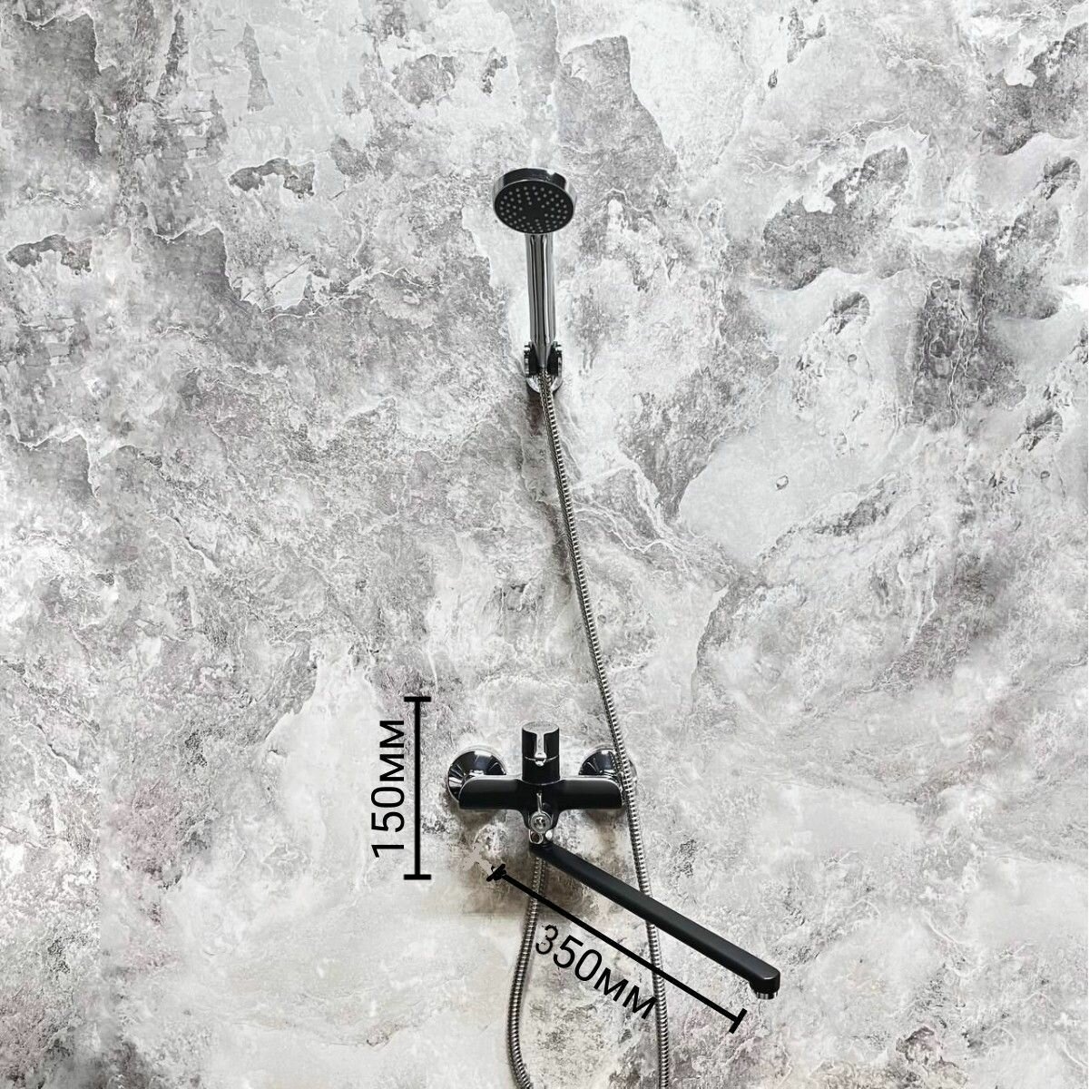 Смеситель для ванны Haiba HB22805-7 с длинным изливом и переключателем в корпусе, черный/хром