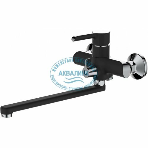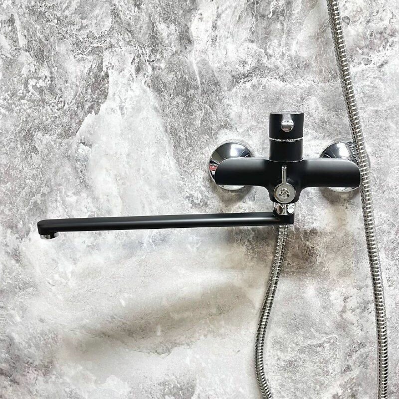 Смеситель для ванны Haiba HB22548-7 с длинным изливом и переключателем в корпусе, черный/хром
