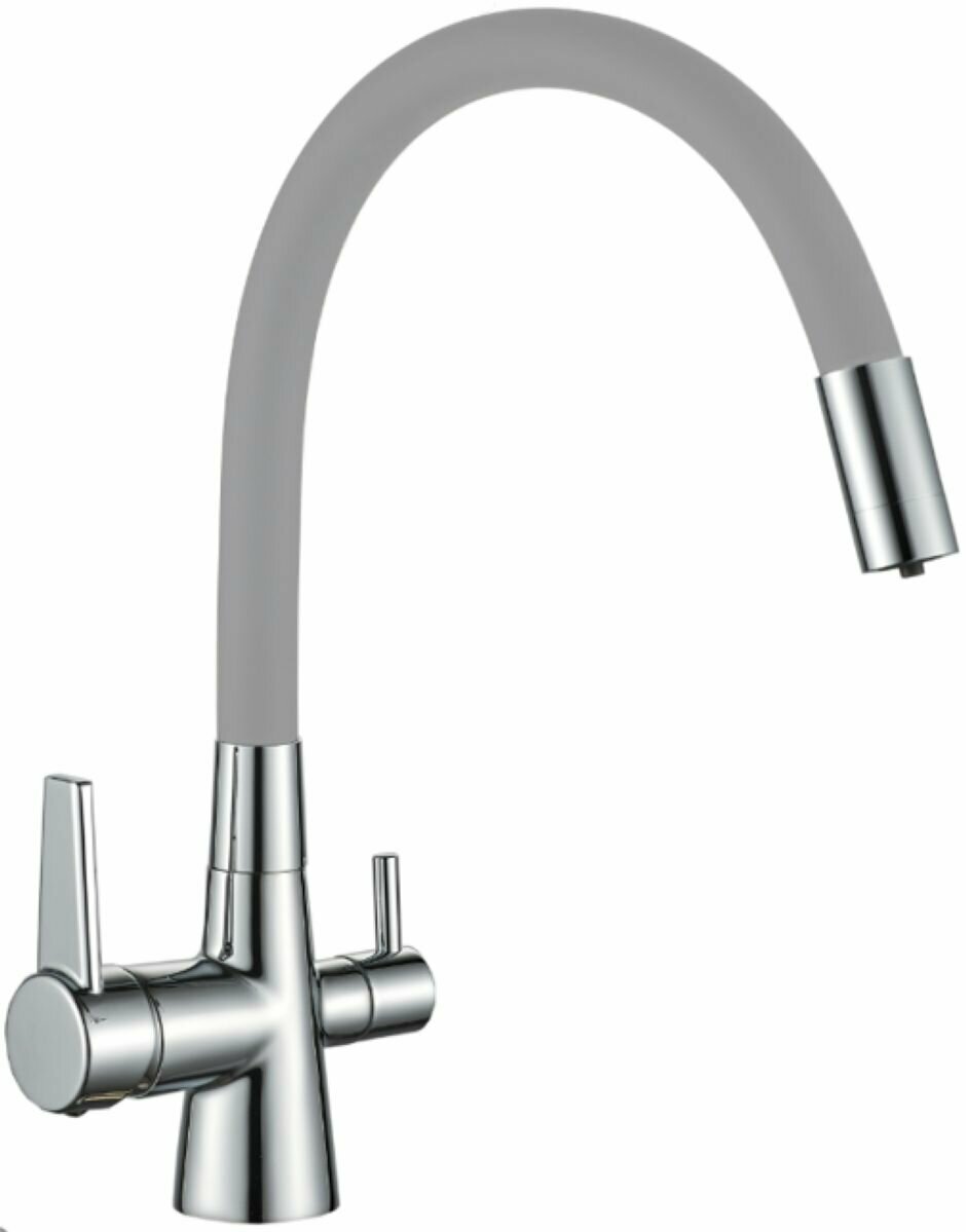Купить Смеситель комбинированный силиконовый с гибким изливом и с подключением фильтра питьевой воды, серый/хром