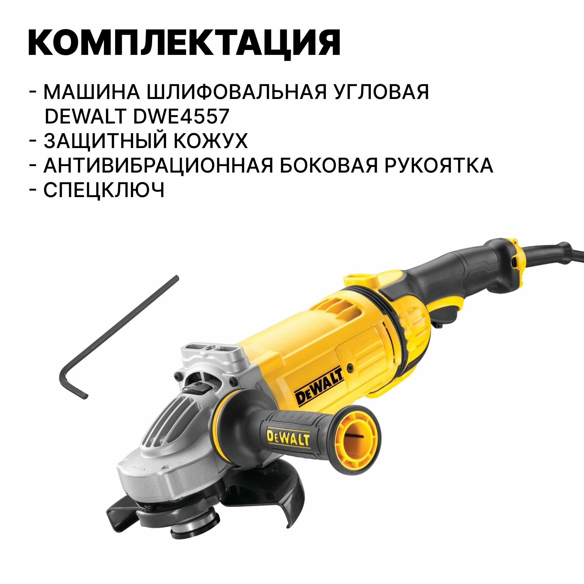 Шлифмашина угловая DWE4557 (2400Вт, ?диска 180мм, 8500об/мин, антивибрационная рукоятка, 5.45кг) DeWalt DWE4557-QS