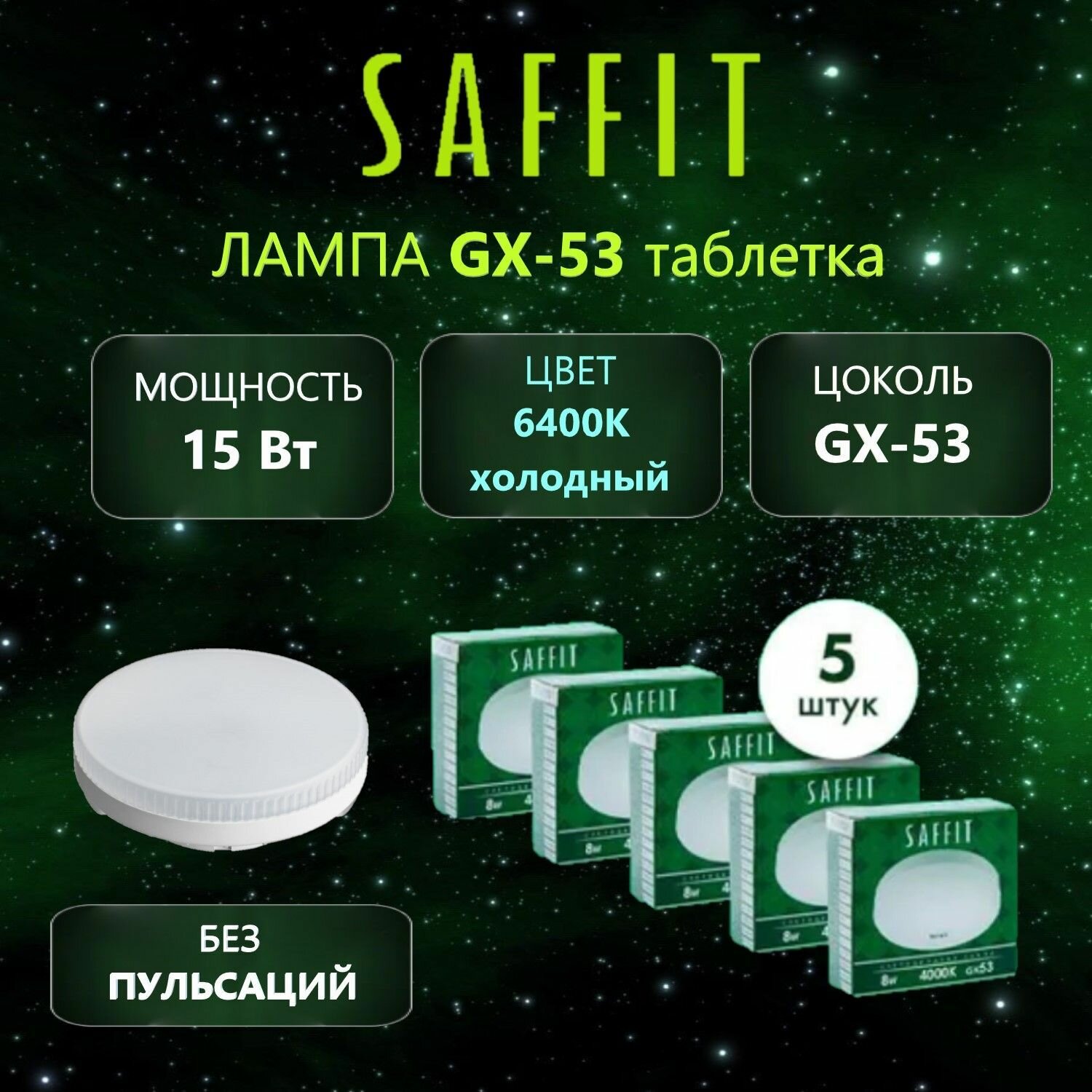 Купить Лампа светодиодная SAFFIT SBGX5315 GX53 15W 6400K, 5 шт