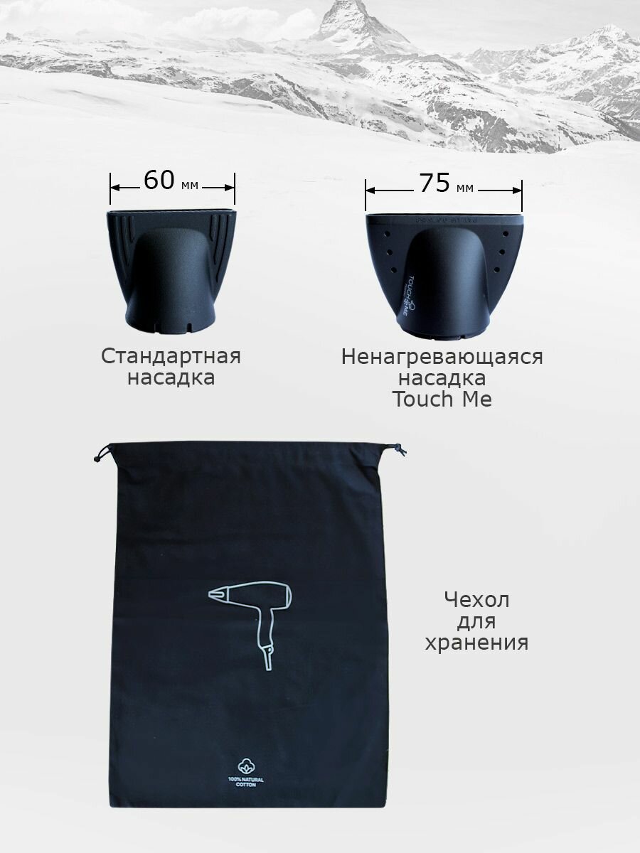 | Дополнительная информация | 2 ультраузких концентратора: ненагревающаяся насадка TOUCH ME (7,5 см), стандартная насадка (6 см) |