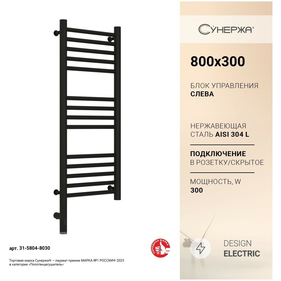 СУНЕРЖА Богема 3.0 прямая Полотенцесушитель 800х300 черный матовый, МЭМ левый 31-5804-8030