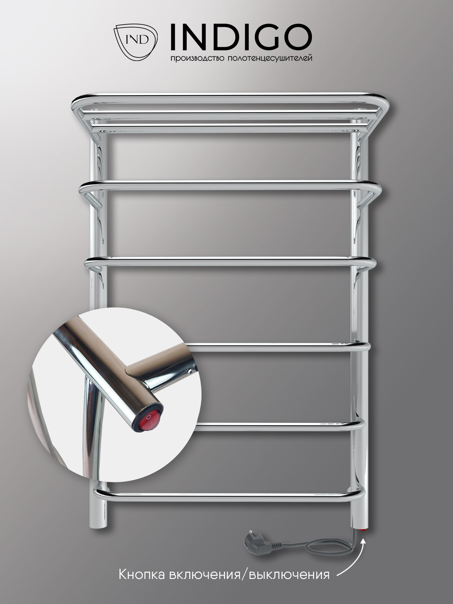Полотенцесушитель электрический INDIGO Hit 80/50 с кнопкой белый