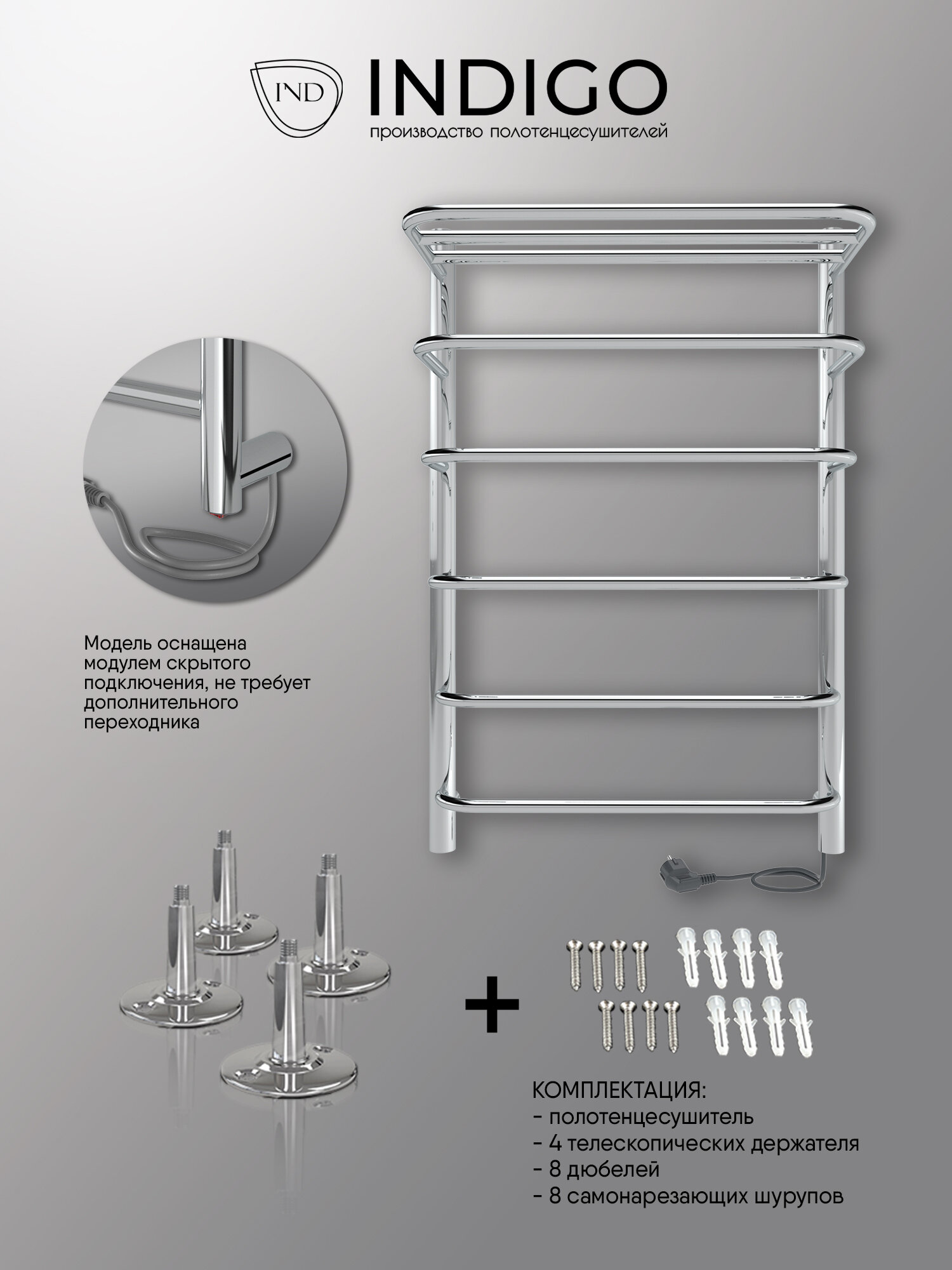 Полотенцесушитель электрический Hit INDIGO 60/50 скрытый монтаж, универсальное подключение