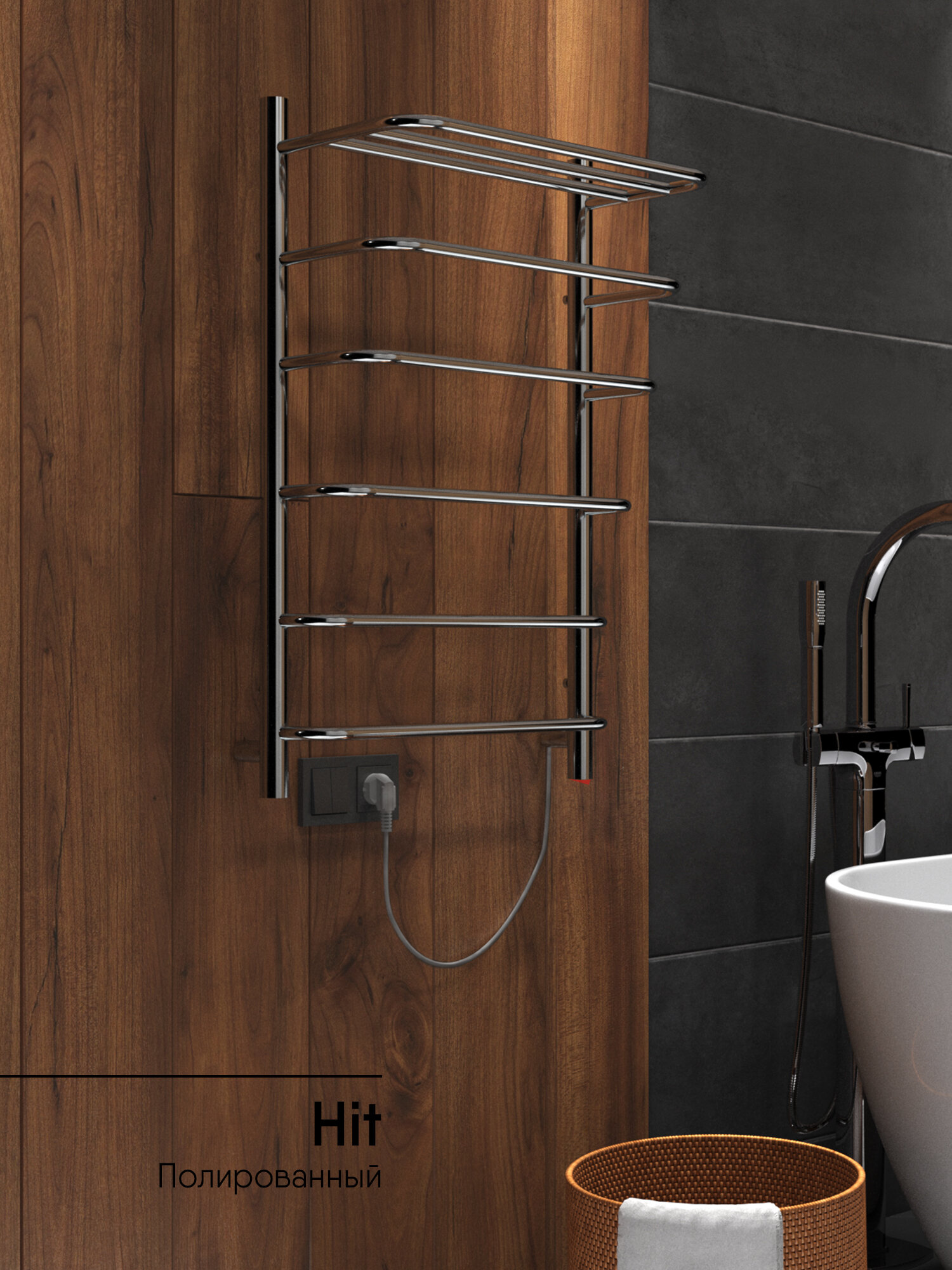Полотенцесушитель электрический INDIGO Hit 60/50 скрытый монтаж, универсальное подключение Черный муар