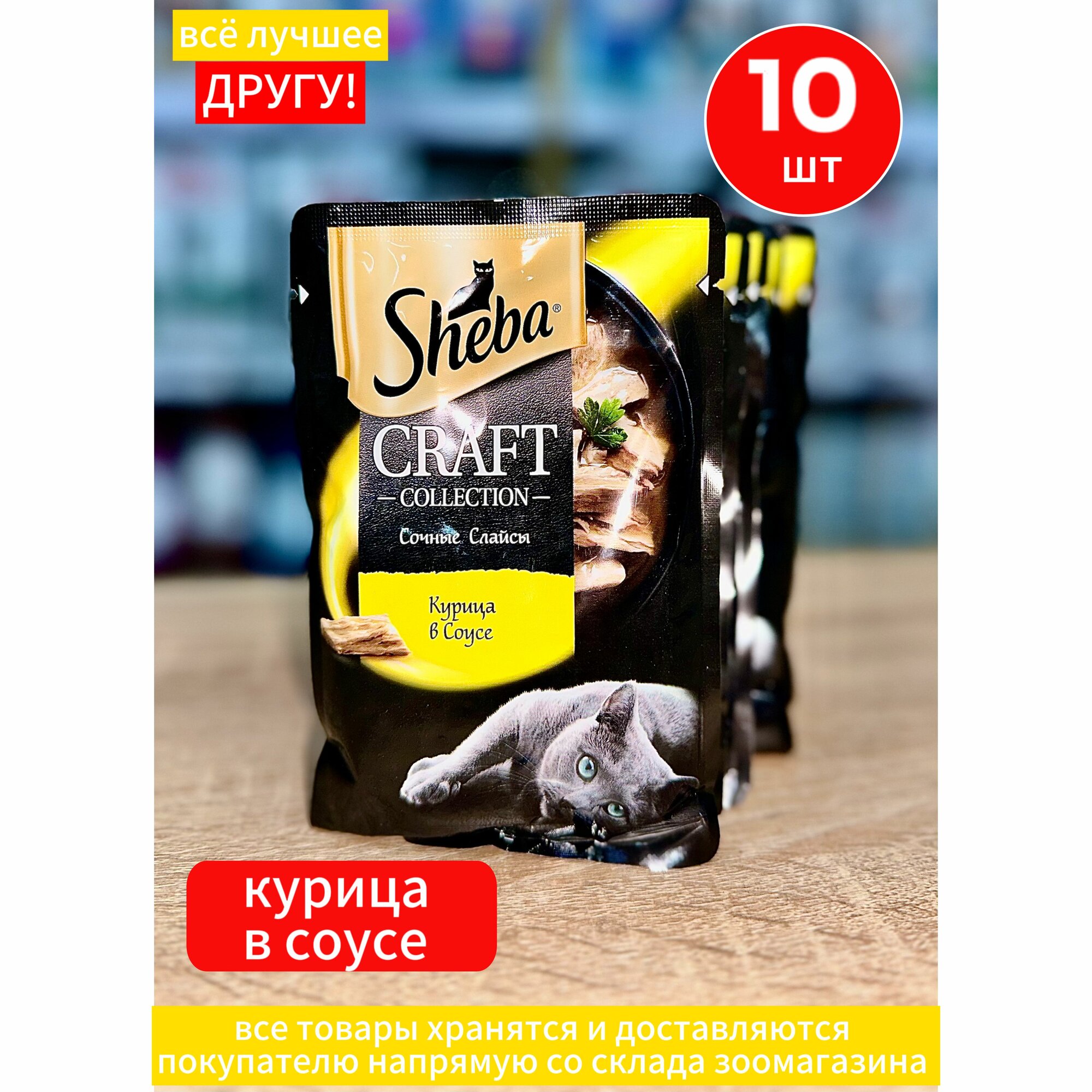 Купить Корм влажный Шеба Sheba Craft для кошек Курица слайсы в соусе 10 шт по 75 г
