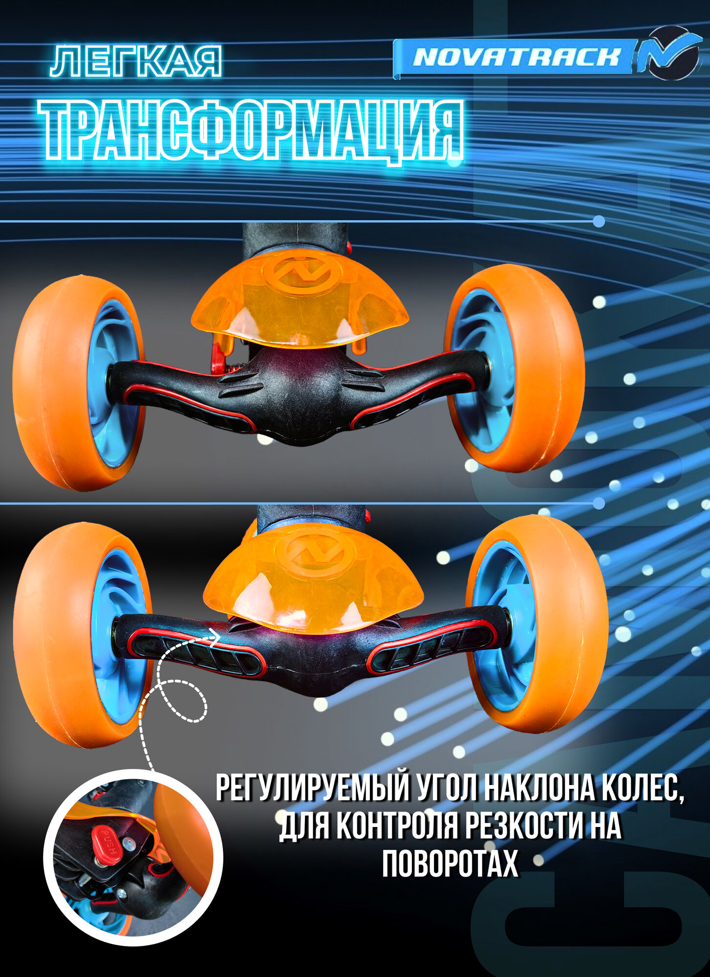 СохранитьСамокат Детский Novatrack RAINBOW PRO TRANSPARENT синий/оранжевый 2022 120PROT.RAINBOW.BL22 интересное: