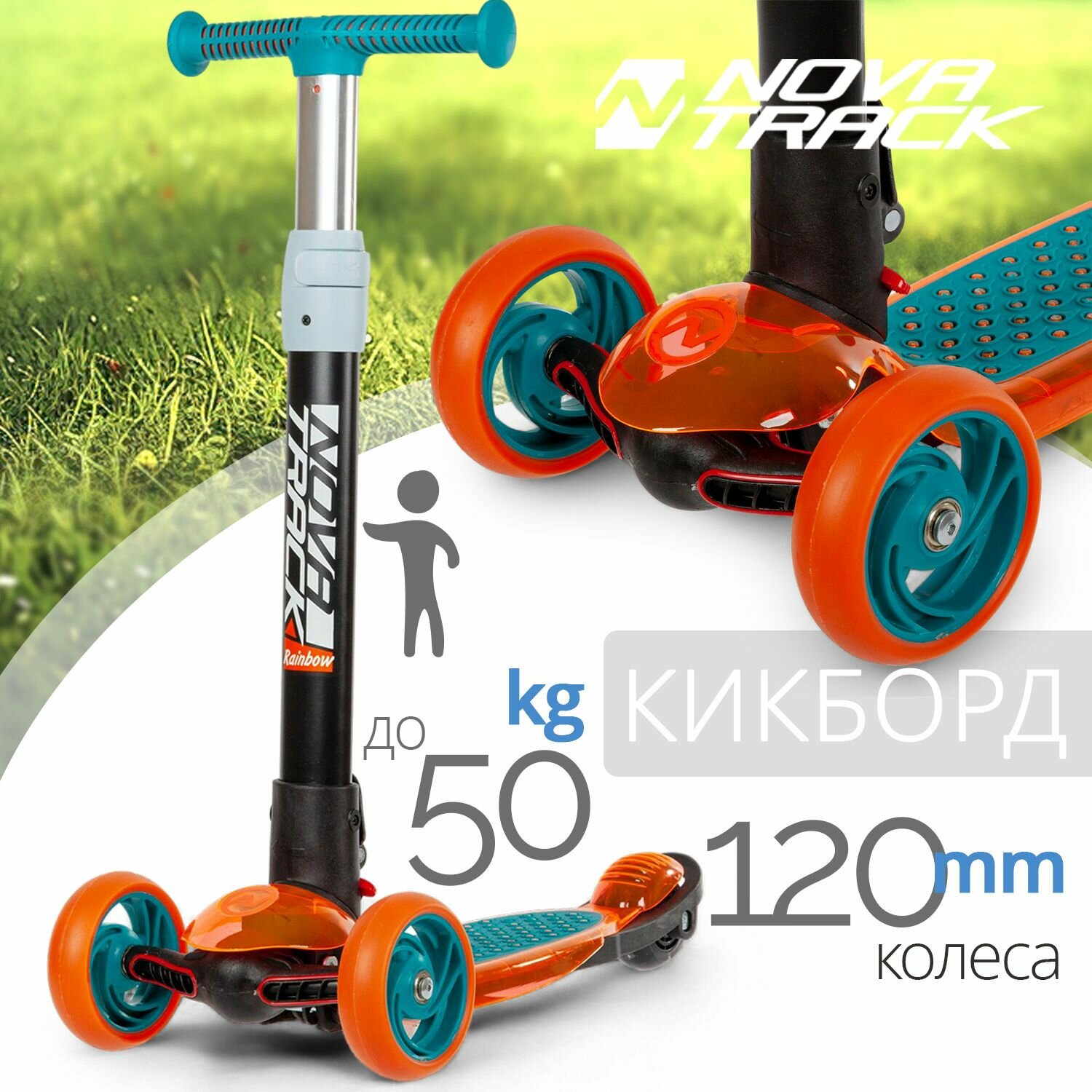 Купить Самокат Детский Novatrack RAINBOW PRO TRANSPARENT синий/оранжевый 2022 120PROT.RAINBOW.BL22