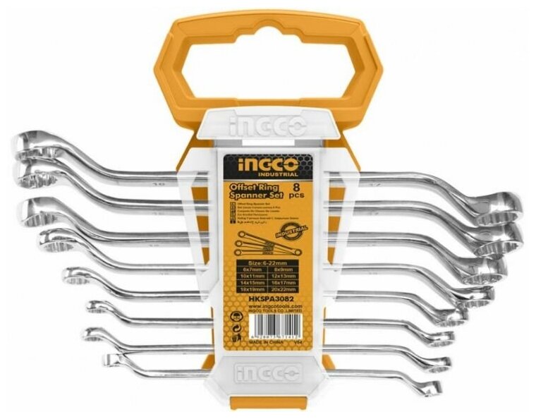 Набор накидных изогнутых ключей INGCO HKSPA3088 INDUSTRIAL 6-22 мм 8 шт.