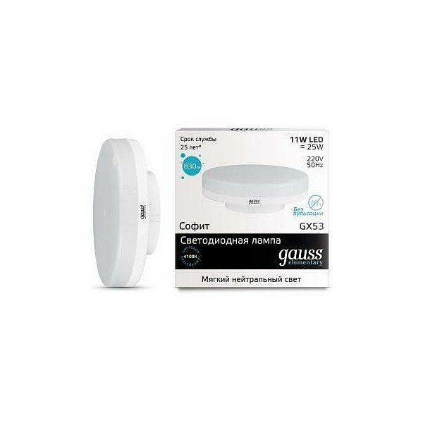 (2 шт)Лампа Gauss Elementary GX53 11W 830lm 4100K LED 1/10/100