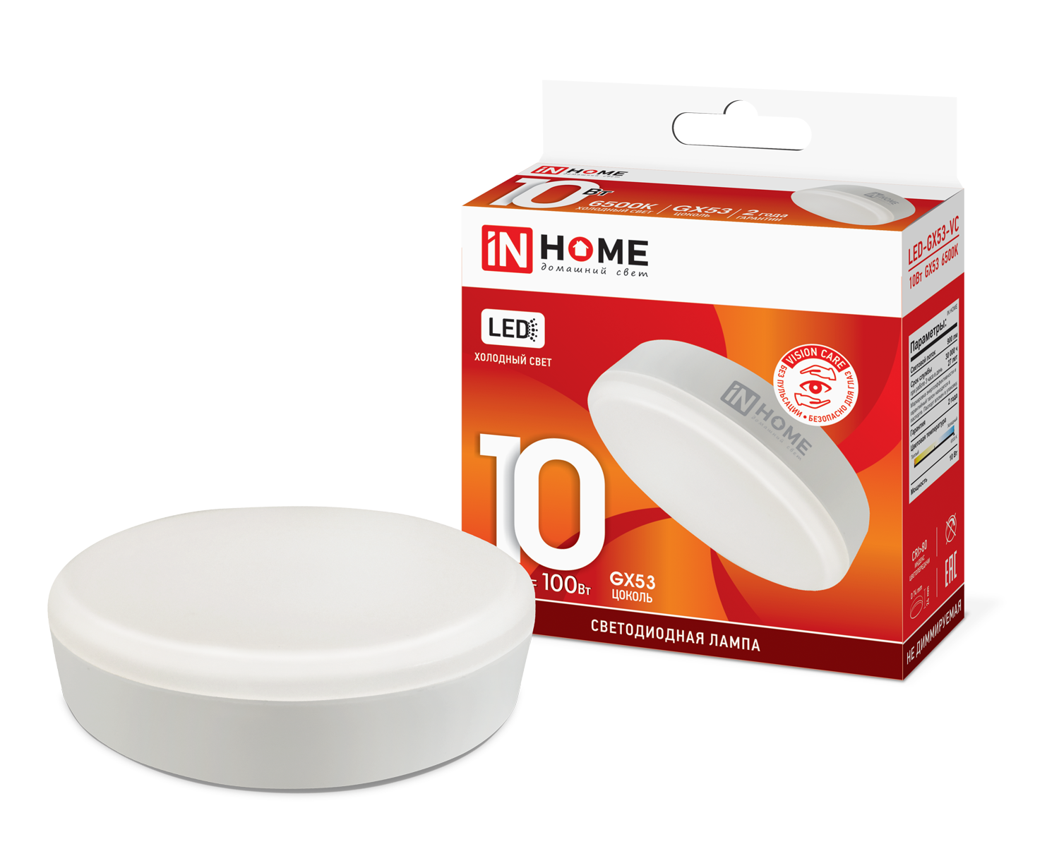 Лампа светодиодная IN HOME LED-GX53-VC, GX53, GX53, 10 Вт, 6500 К