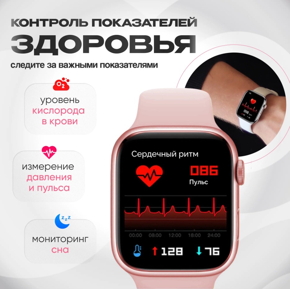 СохранитьСмарт часы 8 серии Умные часы Звонки Уведомления женские и мужские 45мм, розовые интересное: