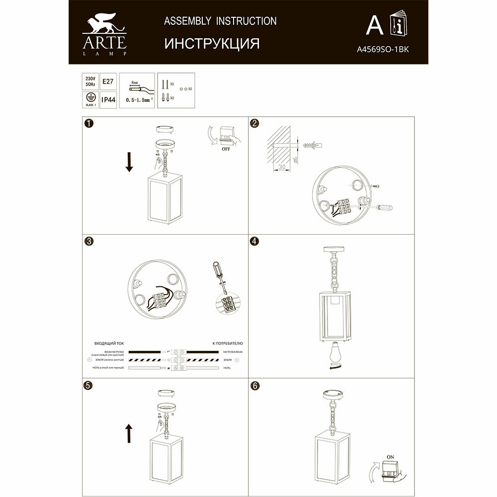 | Подробная комплектация | Уличное освещение Arte Lamp A4569PA-1BK |