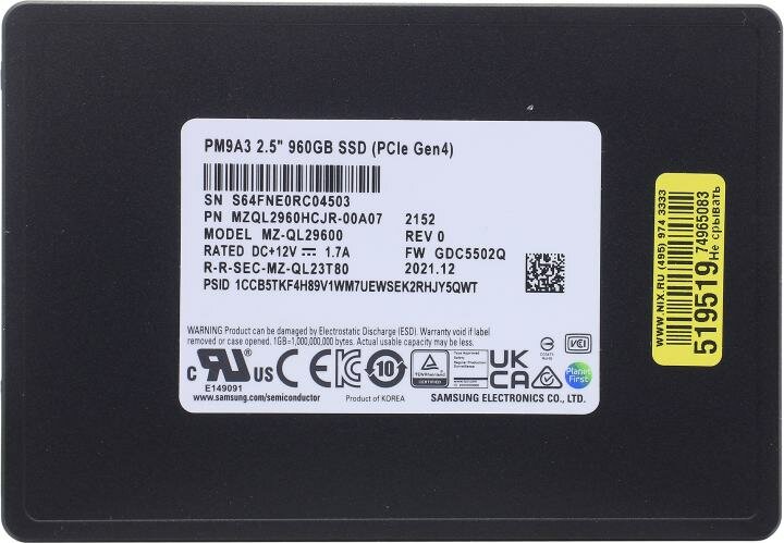 SSD накопитель Samsung PM9A3 MZQL21T9HCJR-00A07 1.92ТБ, 2.5", PCIe 4.0 x4, NVMe, U.2, oem интересное: