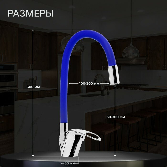 Смеситель для кухни ZEIN 2112, однорычажный, гибкий излив, картридж 40 мм, синий/хром ZEIN 5478292 . интересное: