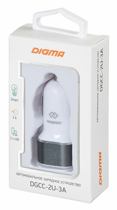 Автомобильное зарядное устройство DIGMA DGCC-2U-3A, белый