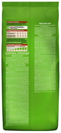 | Состав | злаки, мясо и субпродукты (15%), белковые растительные экстракты, жир животный, свекольный жом, мука рыбная, растительное масло (источник омега-6), овощи, минеральные вещества, витамины, таурин, метионин |