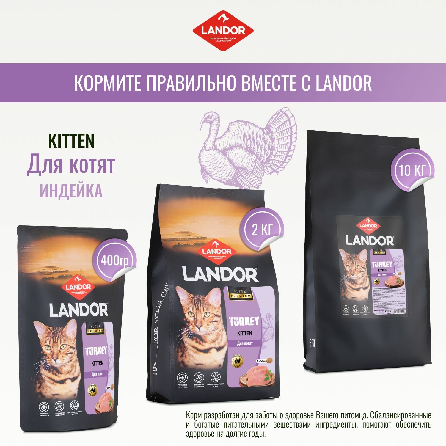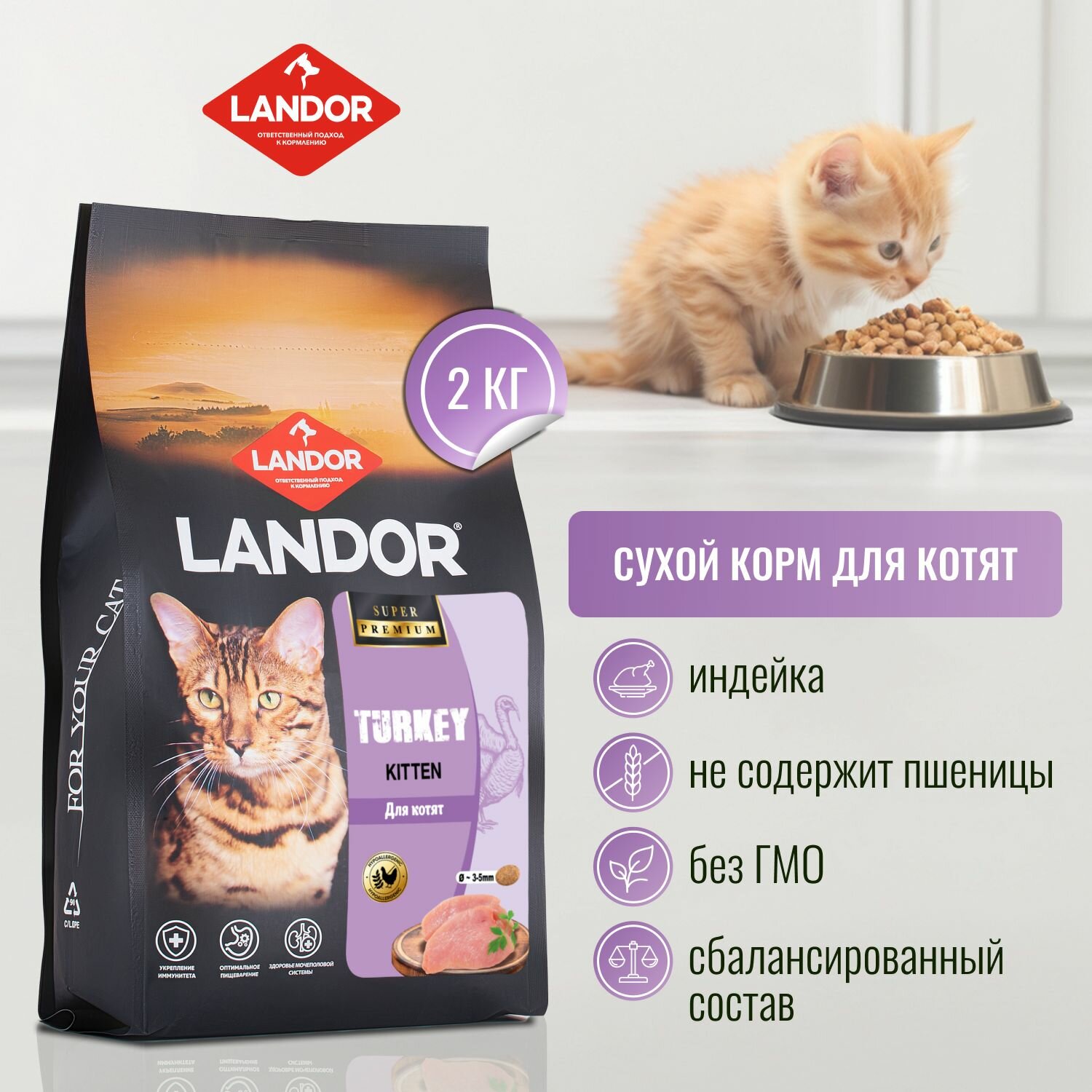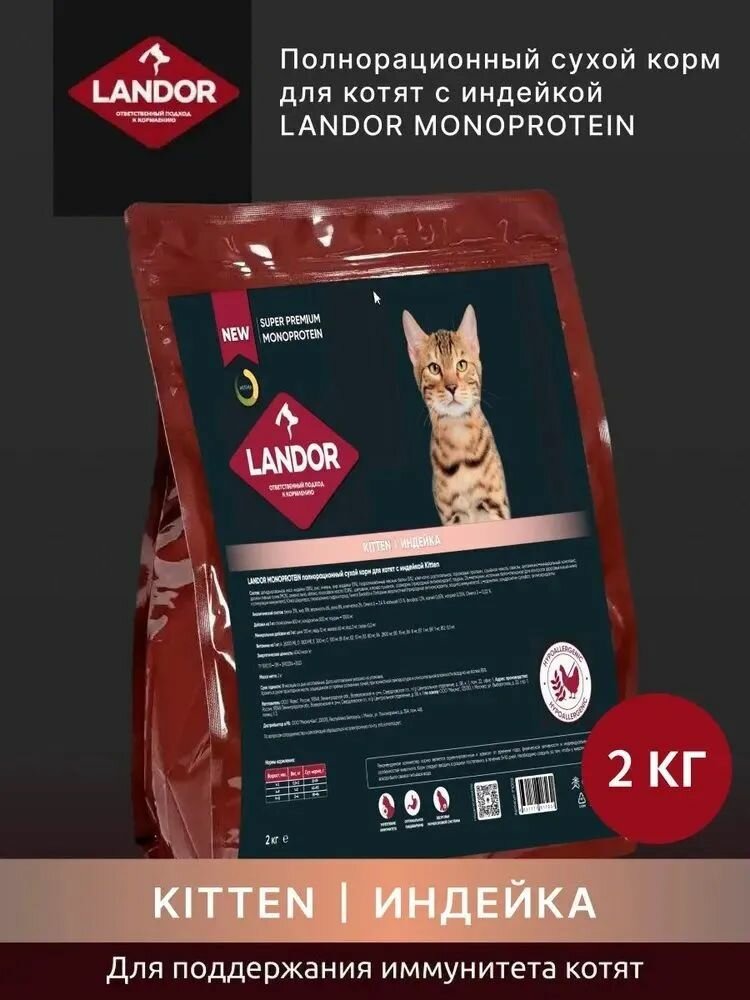 Сухой корм для котят с индейкой 2кг , LANDOR MONOPROTEIN