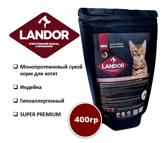 Купить Корм для котят сухой LANDOR MONOPROTEIN, с индейкой 400 гр