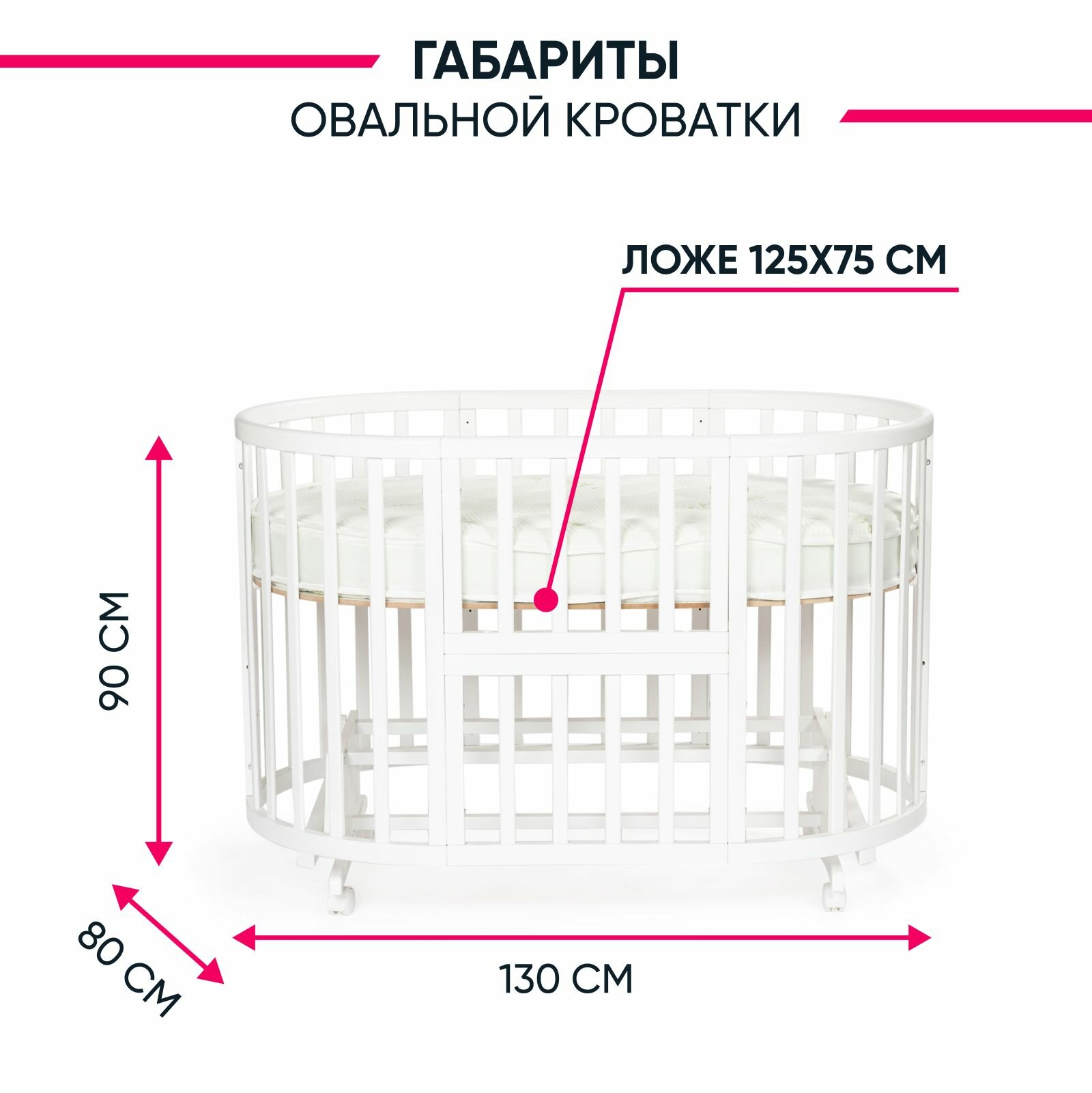 | Особенности | размер спального места овальной 125х75 см; размер диванчика 125х75 см; размер манежа 125х75 см; размер кресла 75х37 см; размер стола 75х50 см; |