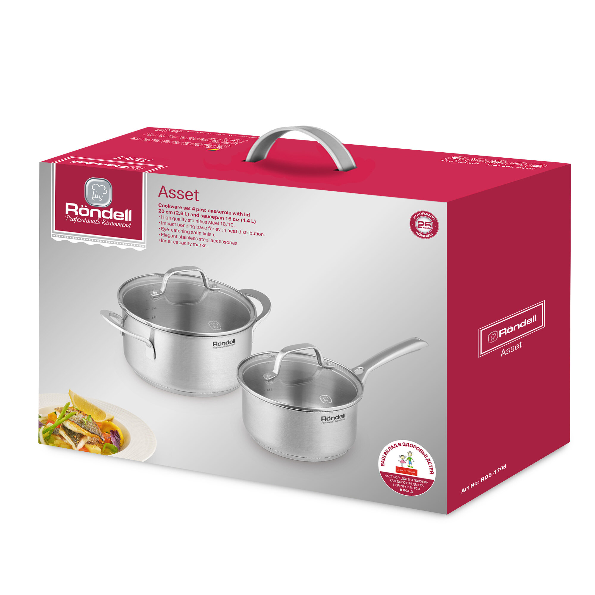 1708 Набор посуды 4 предм: Кастрюля с/кр 20 см 2,8 л, ковш с/кр 16 см 1,4 л Asset Rondell