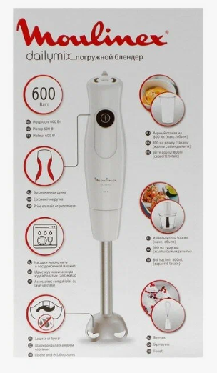 Блендер Moulinex DD533132, погружной, 600 Вт, 0.5/0.8 л, 1 скорость, белый 9911509