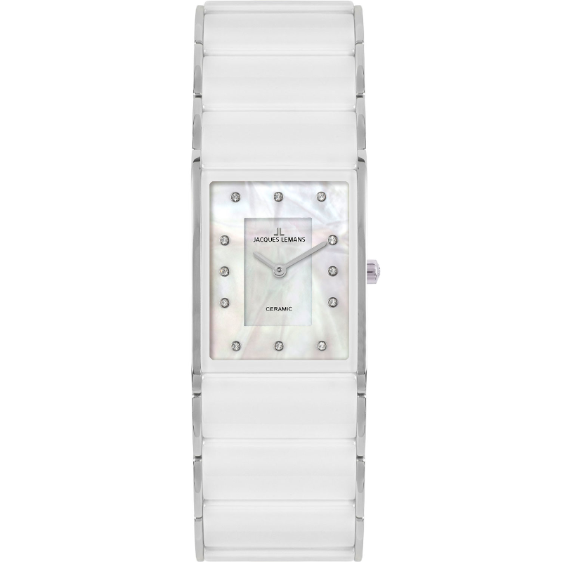 Наручные часы Jacques Lemans 1-1940G, женские прямоугольные кварцевые керамические часы Жак Леман с кристаллами Swarovski на комбинированном браслете (сталь и керамика)