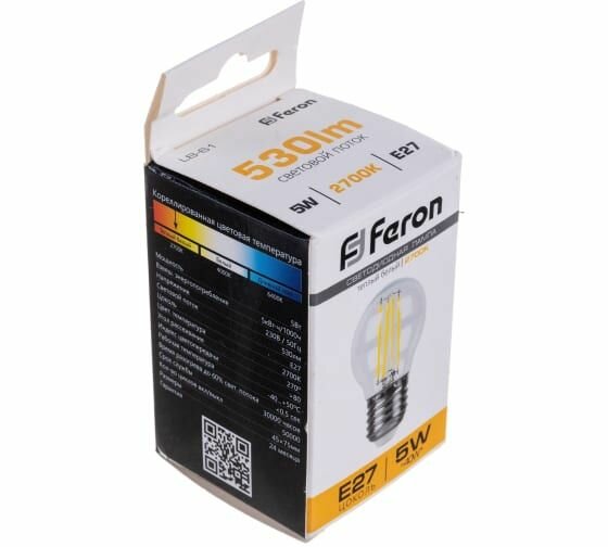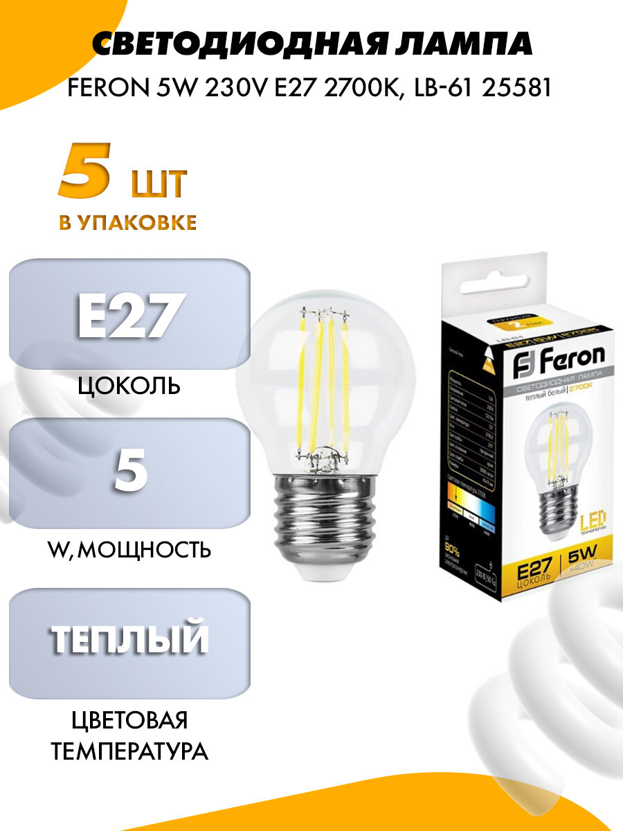 Лампа светодиодная LB-61 Шарик E27 5W 2700K, FERON 25581 (1 шт.)