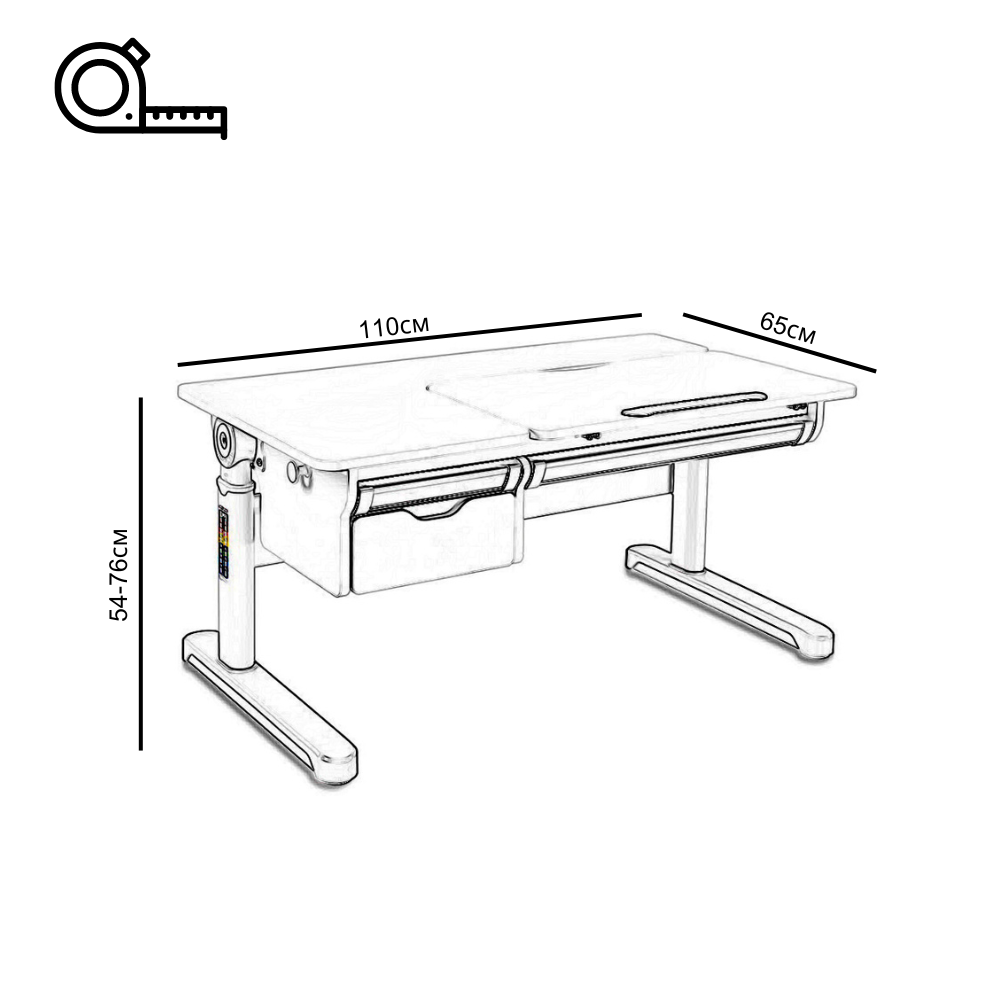 Растущая парта для школьника Rumbik Smart серая, детский деревянный письменный стол с регулировкой высоты