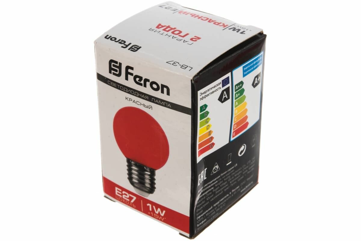 Лампа светодиодная FERON LB-37 арт. 25116, G45 (шар) 1W E27 (красный) 230V