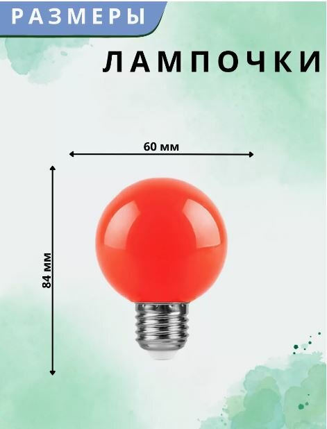 Лампа светодиодная для белт-лайта FERON LB-37, G45 E27 (шар), 1W(80lm) красная матовая 70x45, 25116
