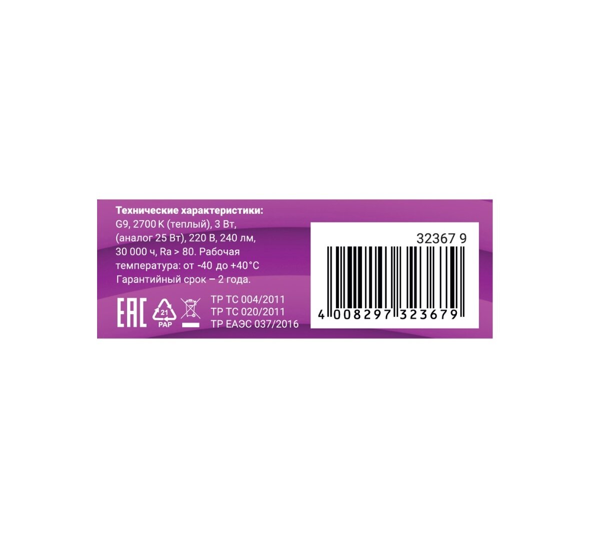 Ниже Вы можете прочитать отзывы на 32367 9 Лампа светодиодная, капсула, JCD, 3Вт, G9, 2700K, 240Лм, 230В, 32367 9, REV, цена за 1 шт., ознакомится с подробными характеристиками, посмотреть интересные обзоры и фотографии на 32367 9 Лампа светодиодная, капсула, JCD, 3Вт, G9, 2700K, 240Лм, 230В, 32367 9, REV, цена за 1 шт..