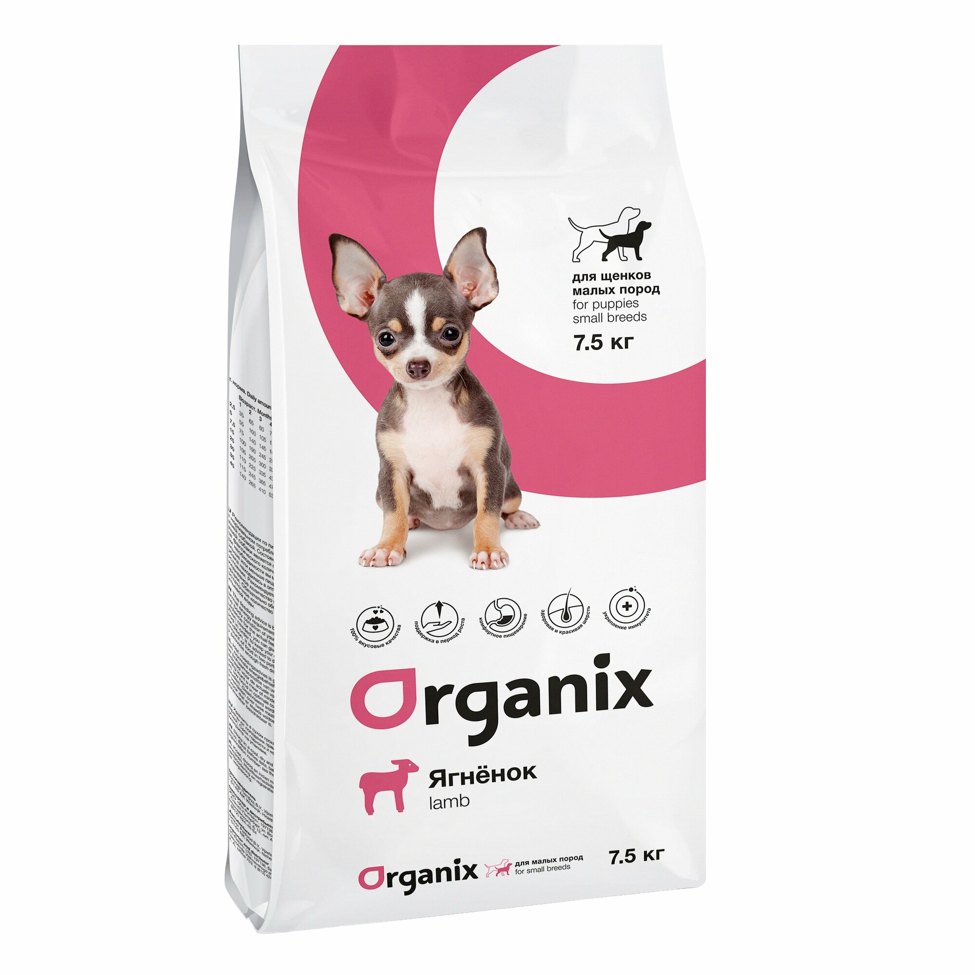 Сухой корм Organix для щенков малых пород с ягненком, 7,5 кг