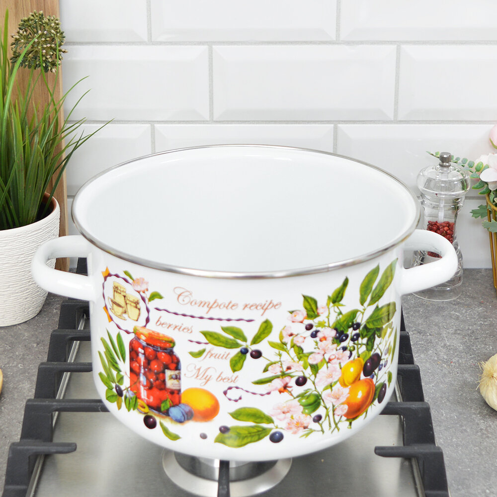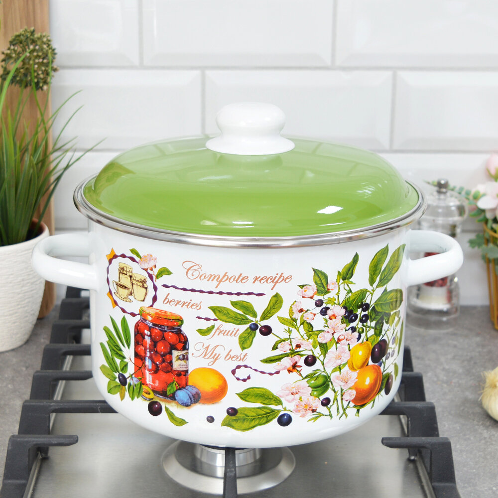 Кастрюля эмалированная СтальЭмаль Вкусный компот с крышкой, 5,5 л