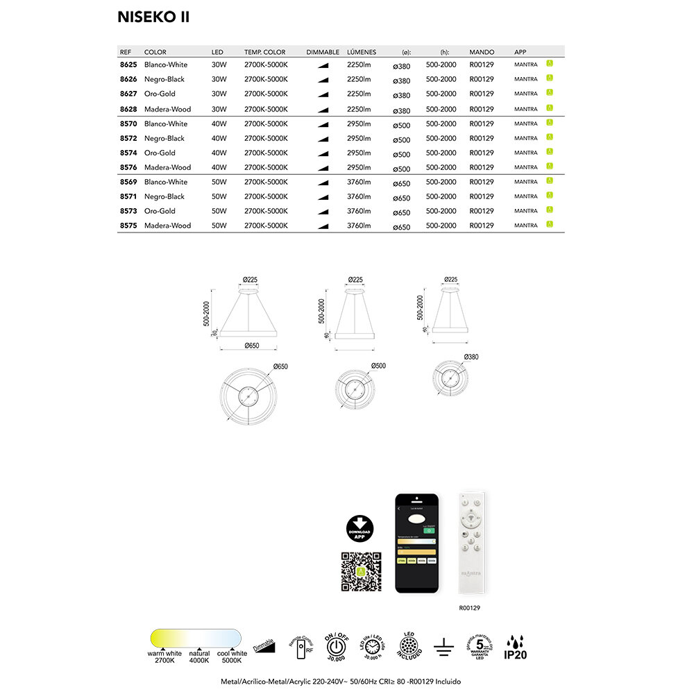 Подвесная люстра Mantra Niseko 8575, LED, 50Вт, кол-во ламп:1шт., Дерево